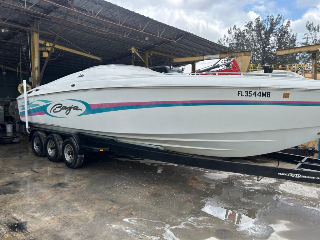 1999 BAJA OUTLAW 30 NEW INTERIOR TWO MONTHS OLD. ENGINES BOTH HAVE BEEN FULLY REBUILT THEY ONLY HAVE 8HRS IN THE WATER REALLY NICE BOAT AT 3,000 RPM DOES 43 MILES PER HR I DIDN'T RAISE THE RPMS TO 5,500 BECAUSE THEY STILL HAVEN'T BEEN BROKEN IN BUT THEY RUN LIKE A ROLEX